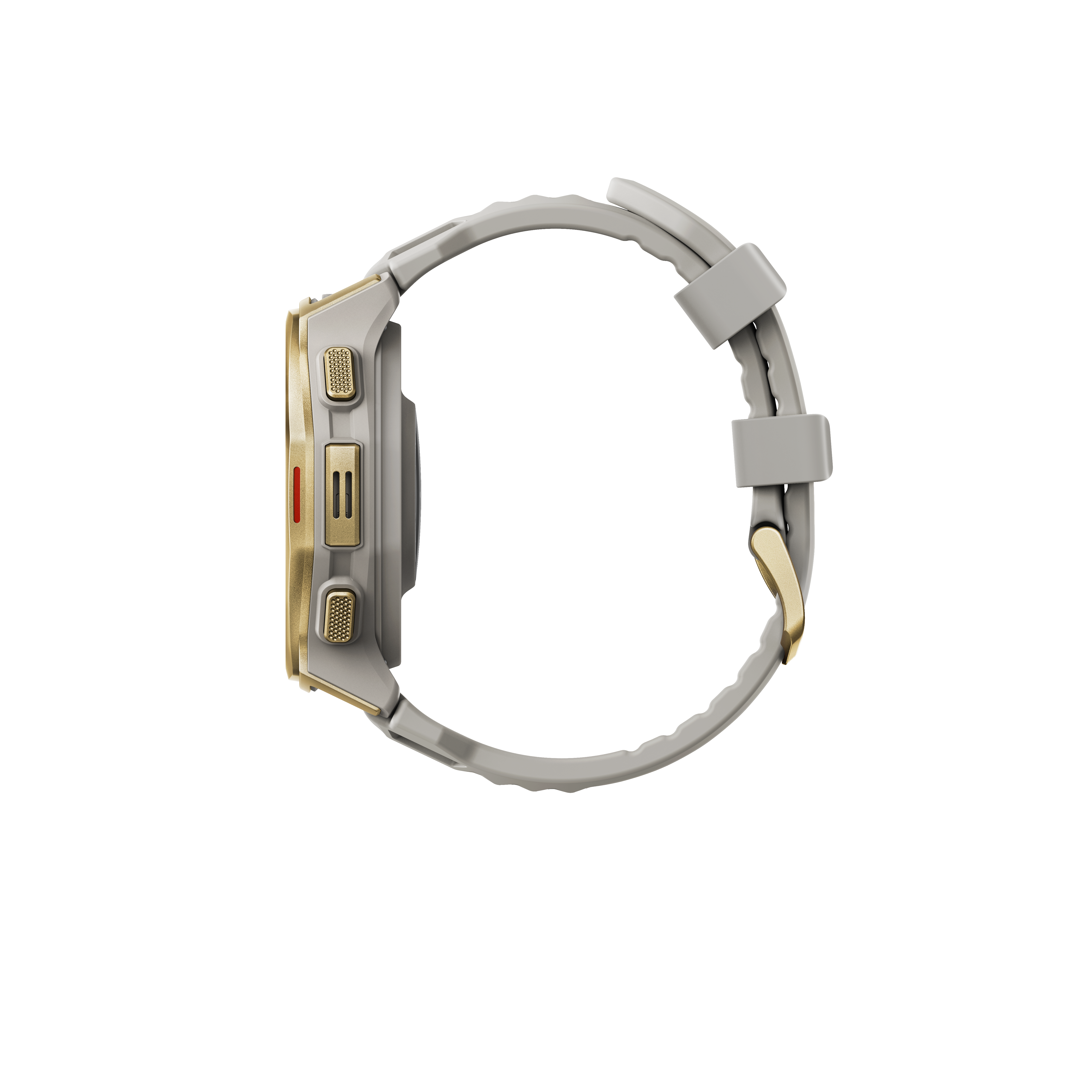17. Chế độ nhiệt độ thấp mặc định bị tắt và cần được bật trong cài đặt đồng hồ. Sau khi được bật, bất cứ khi nào nhiệt độ bề mặt đồng hồ thấp hơn -10°C, đồng hồ sẽ tự động chuyển sang chế độ nhiệt độ thấp, và chỉ một số chức năng hạn chế có thể được sử dụng vào lúc này. Do đặc tính vật lý của pin lithium, thời lượng hoạt động của đồng hồ trong môi trường nhiệt độ thấp sẽ bị ảnh hưởng ở một mức độ nhất định. Thời lượng pin trong môi trường cực thấp có thể thay đổi tùy theo cài đặt, điều kiện vận hành và các yếu tố khác, do đó kết quả thực tế có thể khác với dữ liệu trong phòng thí nghiệm. Hoạt động ở nhiệt độ cực thấp với GPS bật (-10℃ đến -30℃): Đeo đồng hồ cả ngày với chế độ nhiệt độ thấp và GPS được bật; giơ cổ tay để xem thời gian đồng hồ 100 lần; nhận 150 tin nhắn thông báo mỗi ngày; sử dụng màn hình sáng 5 phút mỗi ngày. Hoạt động ở nhiệt độ cực thấp với GPS tắt (-10℃ đến -30℃): Đeo đồng hồ cả ngày với chế độ nhiệt độ thấp bật và GPS tắt; giơ cổ tay lên để xem giờ 100 lần; nhận 150 tin nhắn đẩy mỗi ngày; sử dụng màn hình sáng trong 5 phút mỗi ngày.18. Chất liệu sử dụng cho hộp đóng gói 100% thân thiện với môi trường, với các vật liệu tự phân hủy tự nhiên bao gồm mực không chứa khoáng và nhôm anod hóa được dùng trong quá trình mạ đồng.